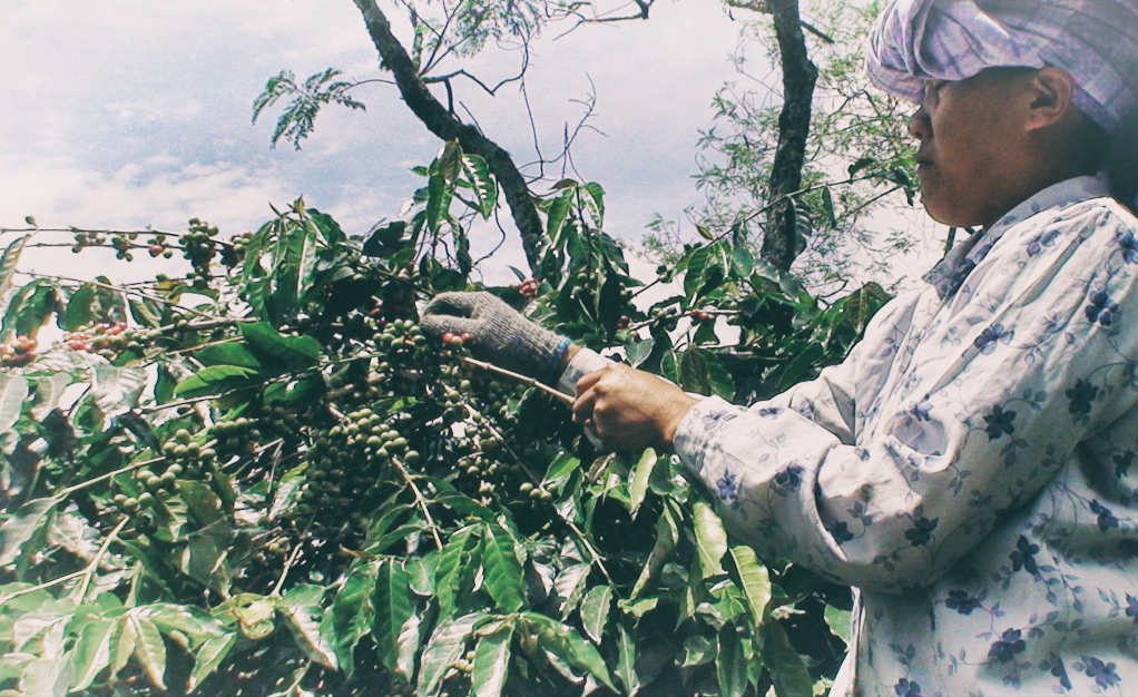 咖啡摘採 - 產地摘採工大多為婦女,以手工為主,挑選較成熟的Cherry red果實,農忙期間產區摘採工甚為短缺。